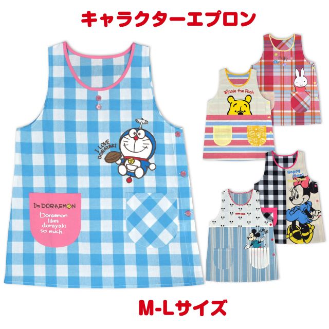 【ネコポス送料無料】キャラクターエプロン プーさん ミッフィ ミッキー ミニー ドラえもん 保育士☆全5色【あす楽対応_北海道】