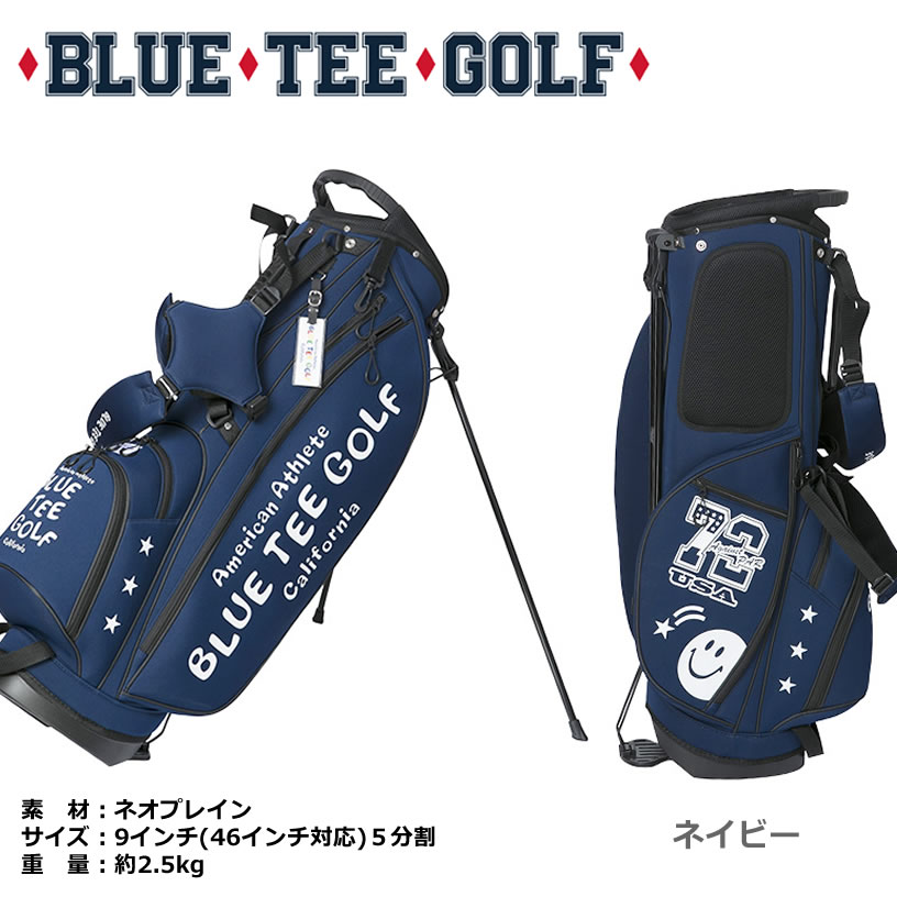 BLUE TEE GOLF ブルーティーゴルフ 超軽量ストレッチスタンドバッグ CB-003 カラー:ネイビー/サックス/イエロー/ピンク/レッド/ブラック/オレンジ/グリーン サイズ:9インチ(46インチ対応)5分割 素材:ネオプレイン 重量:約2.5g ※ネームプレート付き(ネームプレートへの刻印サービスは行っておりません)