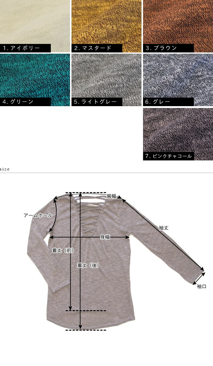 素材 ポリエステル/ナイロン 裏地 なし 生地の伸縮 あり 生地の透け感 あり(後ろの首元が開いているデザインのため、インナーの着用をオススメします) カラー アイボリー/マスタード/ブラウン/グリーン/ライトグレー/グレー/ピンクチャコール 仕様 ※全て霜降りカラーです ※襟は前後で長さが異なるデザイン ※後ろの首元にひもがクロスして開いているデザイン ※入荷時期により、色の濃淡が若干異なる場合があります 配送 注意事項 ※製品の特性上、摩擦などにより多少の色落ちや色移りする場合があります。
